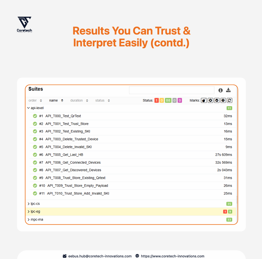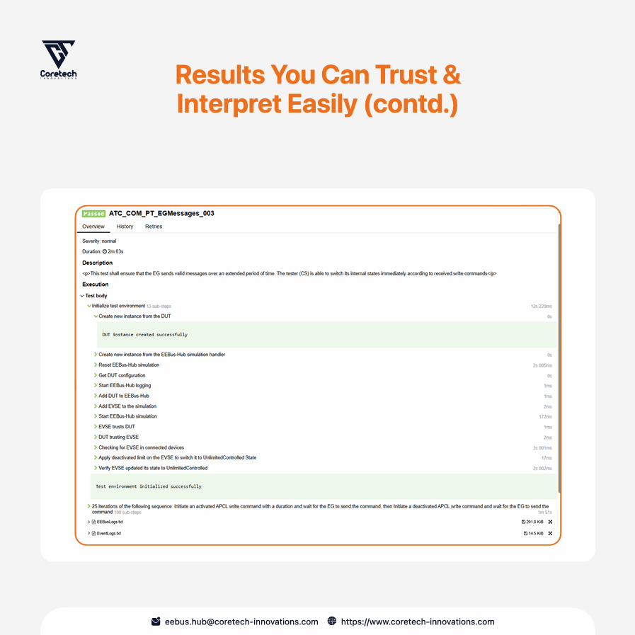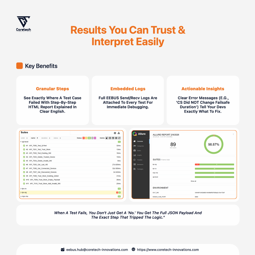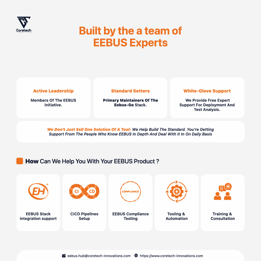 This helps teams detect issues earlier, reduce manual test effort, and move EEBUS validation earlier in the development process instead of leaving it to the final phase. Especially relevant for EVSE, heat pump, inverter, HEMS, control box, and other smart energy device teams preparing products for German market.