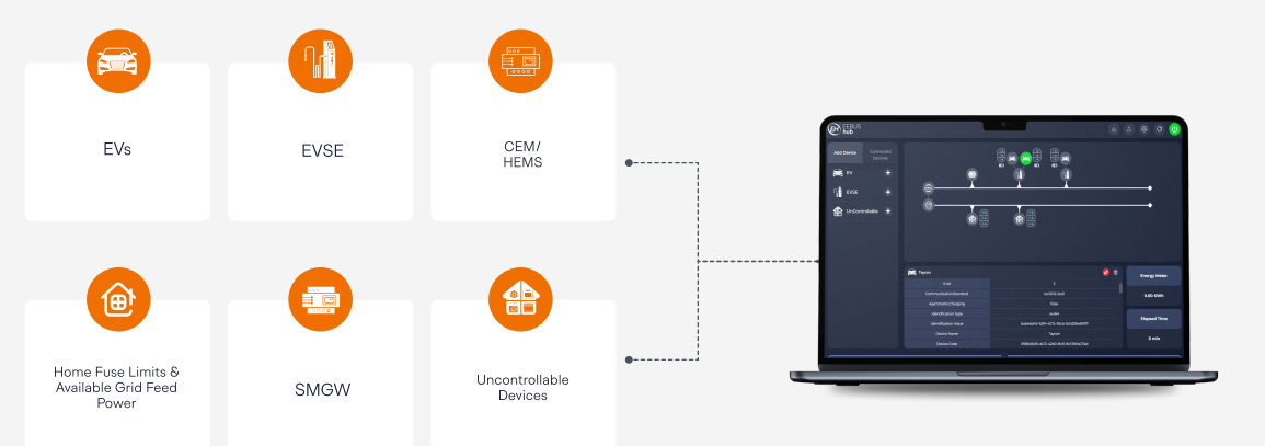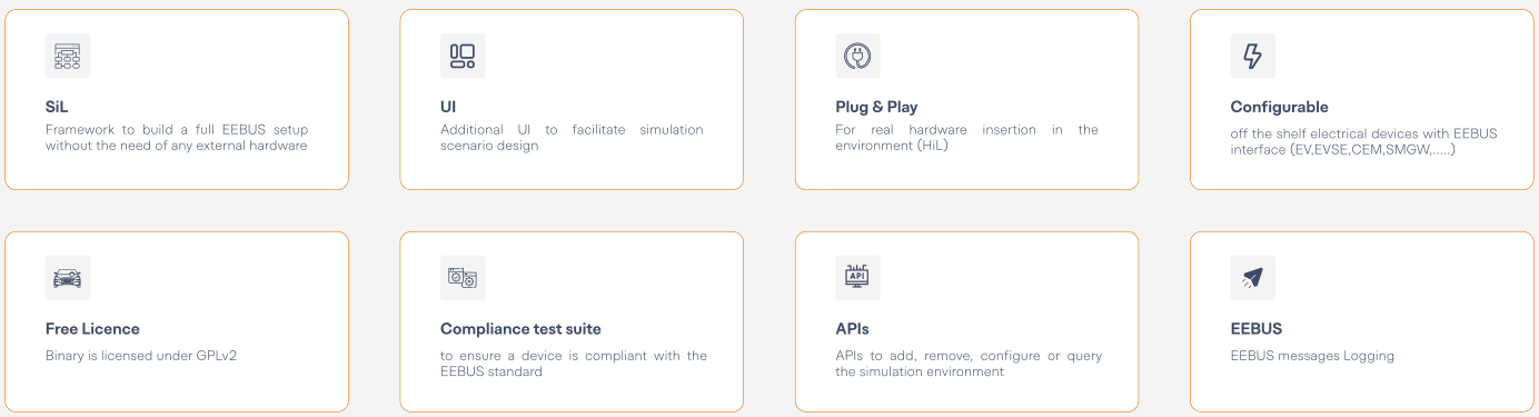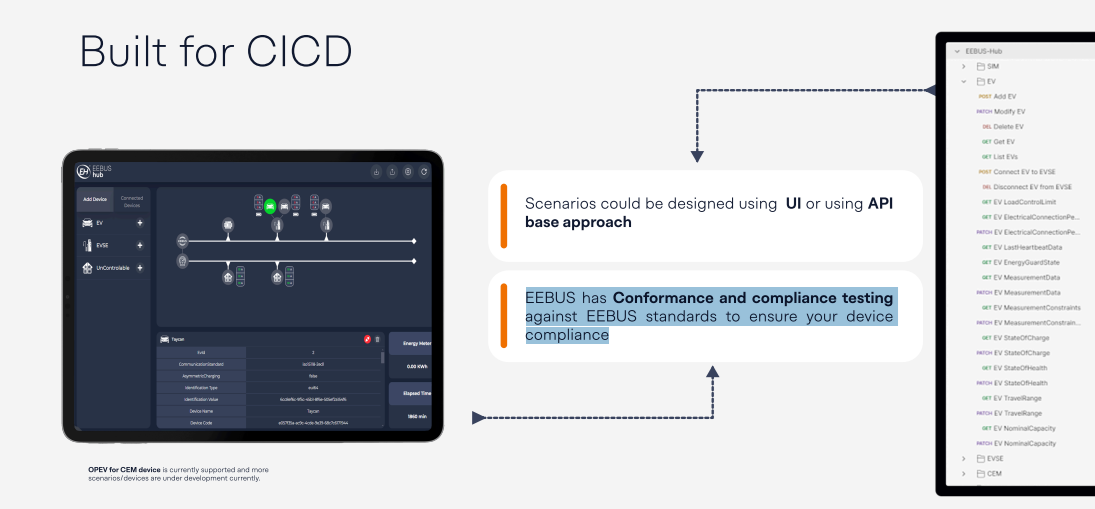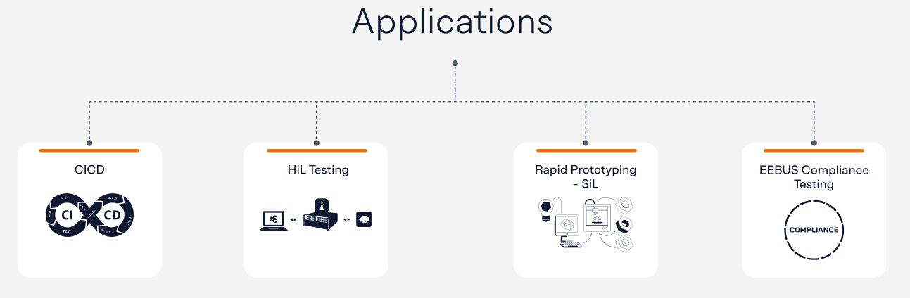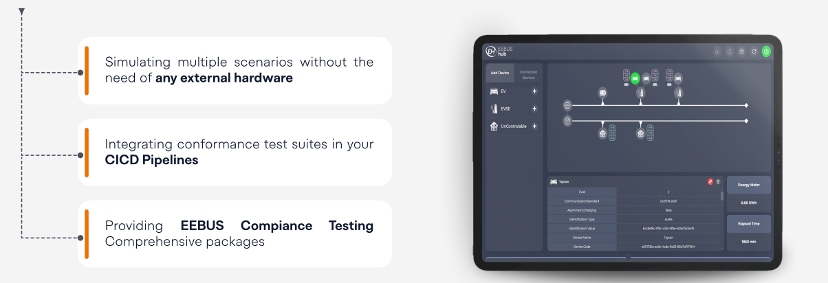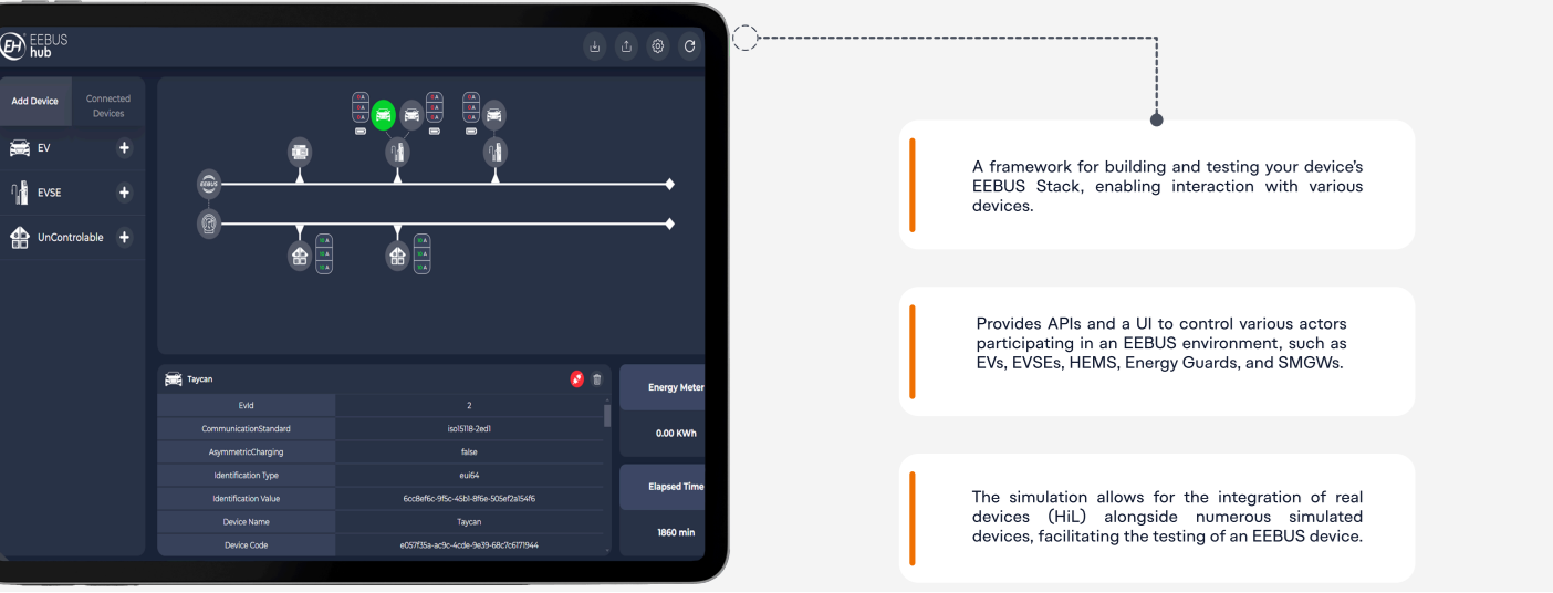 EEBUS-Hub Supports plugging real hardware into the simulation so that you can test your device interaction with other devices over different use cases and scenarios.